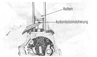 von der Pleuelstange abgenommen, indem man die Kolbenbolzensicherung heraus