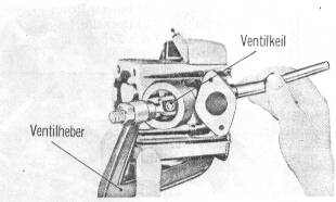 die Ventilkeile herausgenommen werden und das Ventil kommt frei.