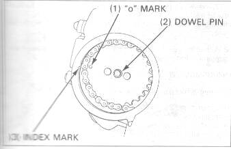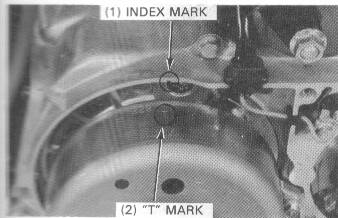 Marke am Schwungrad mit derfeststehenden Einstellmarke am Motorgehäuse